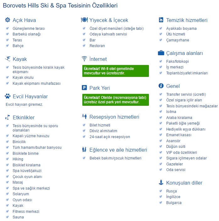 Tesiste sigara içilmeyen odalar mevcuttur. Ski & Spa otelinin konukları, yüzme havuzu, buhar banyosu, sağlık havuzu ve fitness merkezinden ücretsiz olarak yararlanabilirler.
